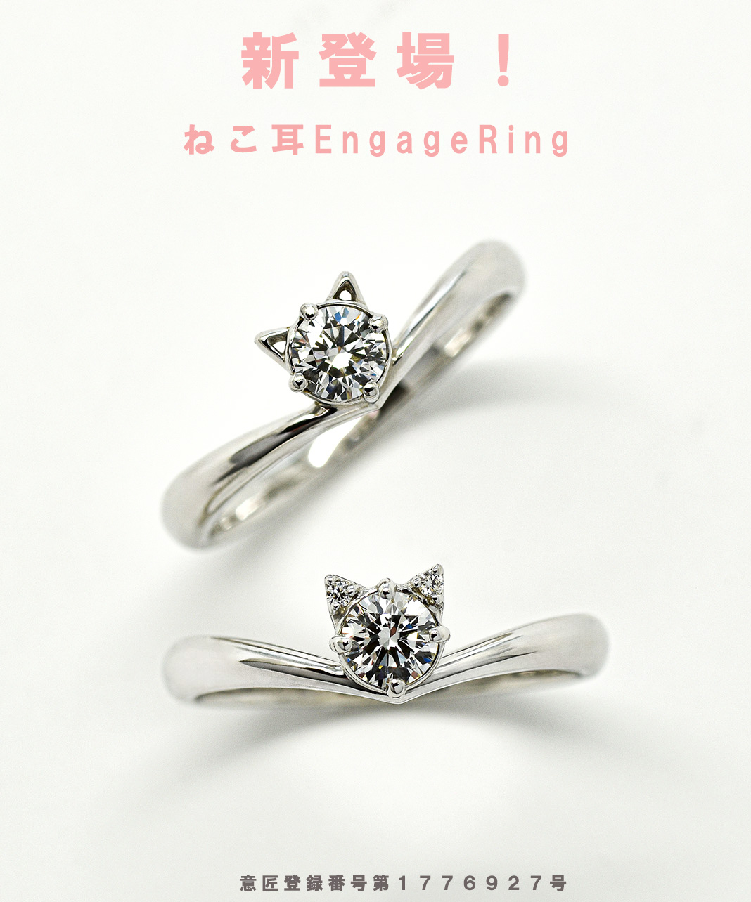こちらの“ねこ耳エンゲージリング”は意匠登録をされた当店独自のオリジナルデザインです。